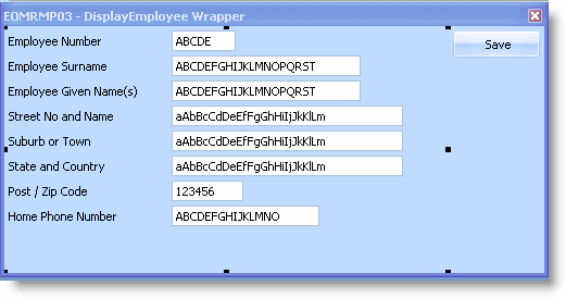 8. Test your screen wrapper by selecting an employee and displaying the Details Wrapper command handler for an employee: