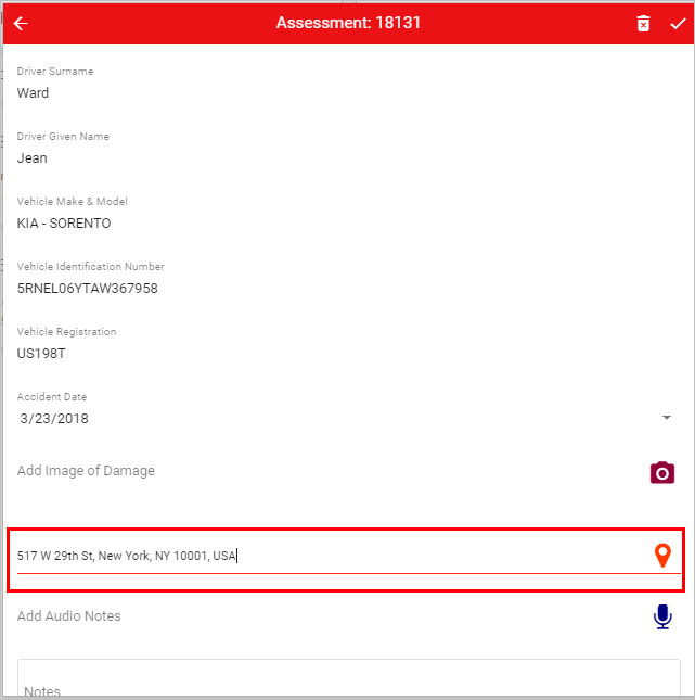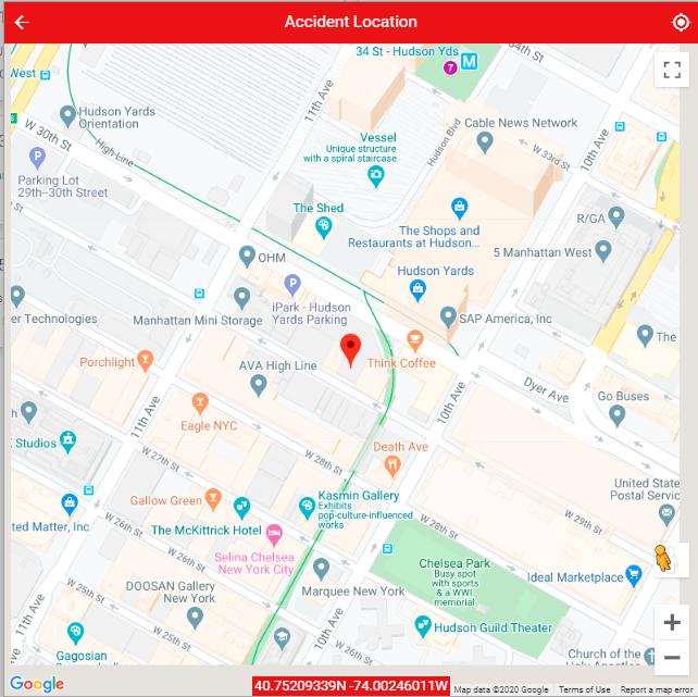 事故評価のサンプルアプリケーションでは、Google ジオ・エンコーディングおよびデコーディングを使用して、Google マップ上のピンの住所と位置情報(緯度、経度)を取得する方法、または逆に住所情報を使用して緯度経度情報を取得する方法を示しています。