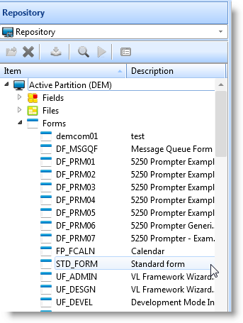 新しいフォームを作成する場合は、常にシステムの標準フォーム(STD_FORM)コンポーネントをモデルにします。同様に、すべての再利用可能パーツは、STD_PANLをモデルにします。