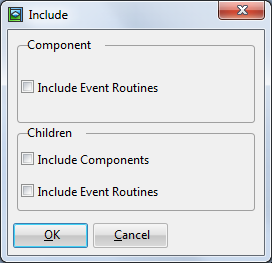 コンポーネントのコピー方法を指定できるダイアログが表示されます。コンポーネントに他のコンポーネントが含まれる場合は、他のコンポーネントとそのイベント・ルーチンもコピーするかどうかを指定できます。
