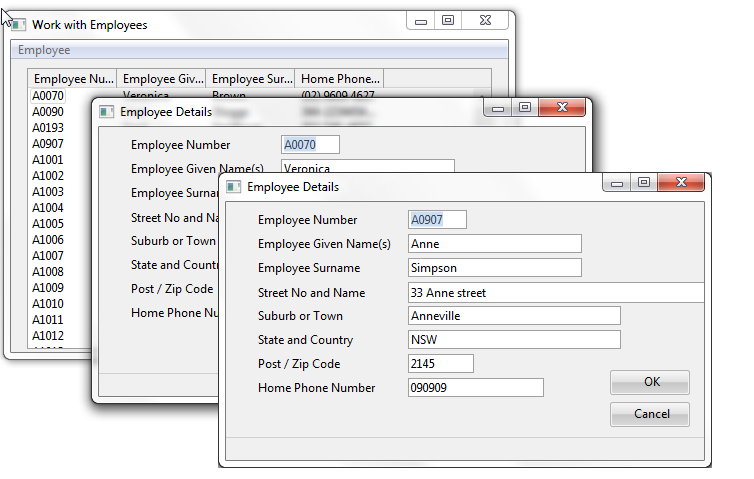 作成したアプリケーションでは、同時に1人の社員の詳細だけを表示できます。そのため、同時に複数の社員の詳細を表示できる別のバージョンのアプリケーションも作成しました。