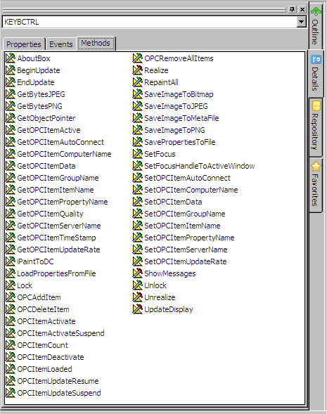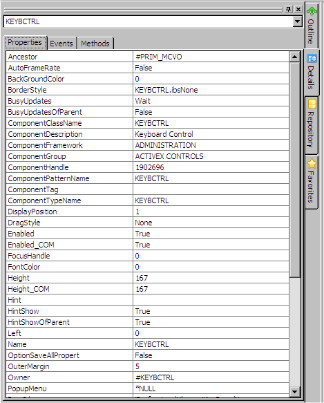 ActiveXコンポーネントを保存すると、登録済みActiveXコントロールのイベントやメソッドはすべて、[詳細]タブに表示されます。先にダウンロードしたキーボード・コンポーネントのメソッドも、ここに現れているはずです。