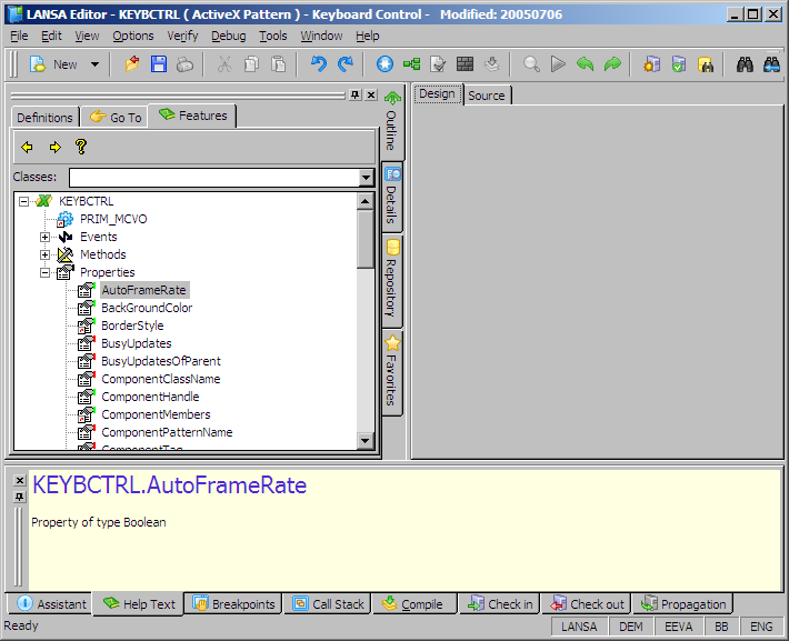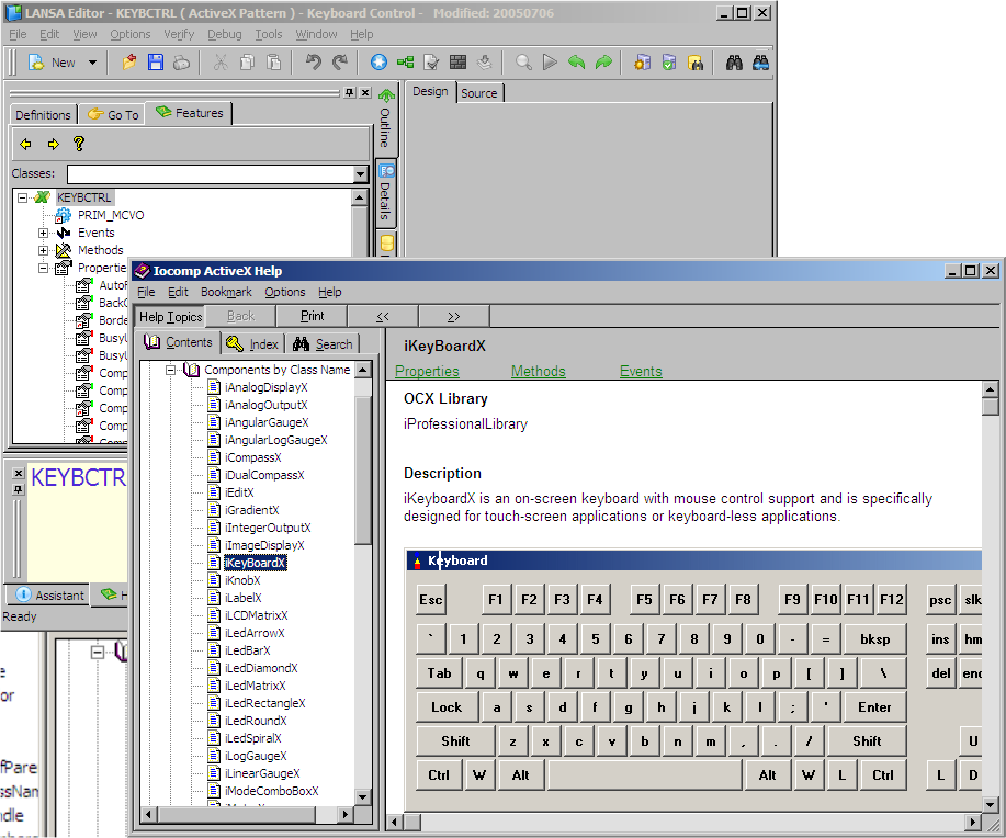 コンポーネントのヘルプ画面には、プロパティ(Visual LANSA、組み込みとも)、イベント、メソッドがすべて載っています。Visual LANSAのプロパティは、幅/高さなど、どんなコントロールにも共通の属性を設定するために使います。一方、組み込みプロパティは、ActiveXコントロールごとに具体的な内容は異なります。