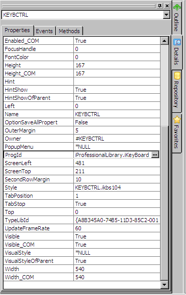 「タイプ・ライブラリ」はいくつかのコンポーネントから成ります。例えばキーボード制御コントロールが属するタイプ・ライブラリには、それ以外のコントロールも含まれています。これは、キーボード制御コントロールの[プロパティ]タブでTypeLibIdプロパティを選択し、[...]ボタンを押すと調べることができます。