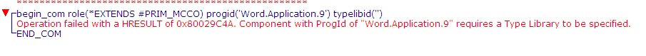 OKを押してProgIDを指定してください。TypeLibIdは空のままになっていることがわかります。可能であればLANSA側で自動的に判断して値を埋めてくれるのですが、今回はそうなっていません。そのため、コンポーネントのソースビューに切り替えると、BEGIN_COMステートメントに、タイプ・ライブラリの指定がない旨のエラーが現れているはずです。