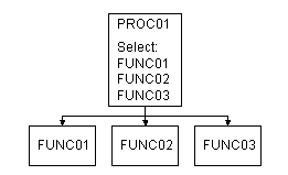 例えば、FUNC01~FUNC03というファンクションから成るPROC01というプロセスは、画面には次のように表示されます。