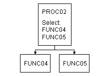 これとは別にPROC02というプロセスがあって、これはFUNC04およびFUNC05というファンクションから成るとすれば、画面表示は次のようになります。