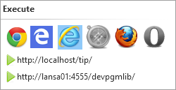 Web ページ実行時に使用するベース URL や異なるターゲットブラウザを指定したい場合は、[ホーム] リボンに戻り、[実行] アイコンのドロップダウンから適切なオプションを選択します。