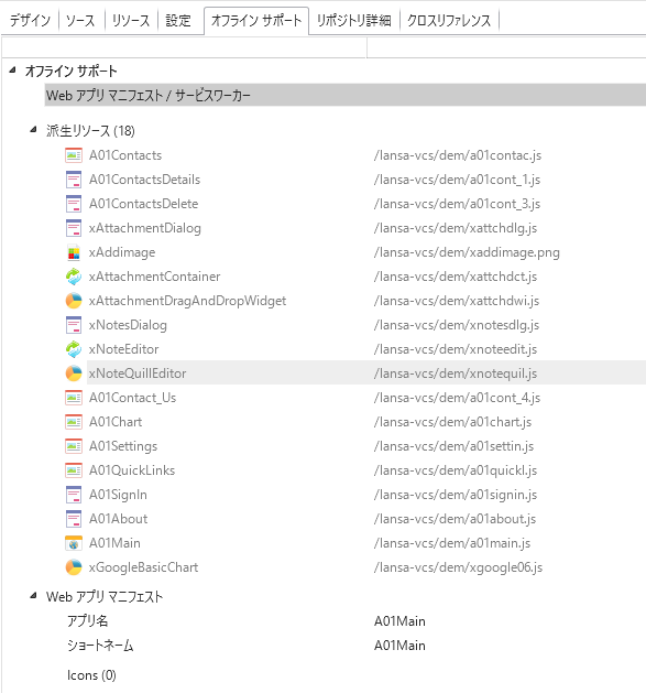 この [オフライン サポート] タブにより、アプリケーション内にサービスワーカーを含めるようになり、Web アプリのマニフェストの操作やキャッシュするリソースを指定できるようになります。