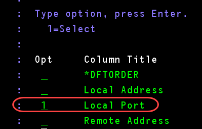IBM i のメイン・メニューから次のコマンドを実行し、現在使用されているポート確認します。