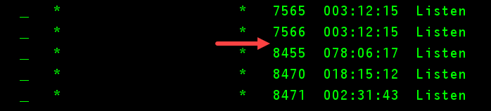 F14 を押下して、すべてのポート番号を表示させ、F13ローカル・ポート番号順にソートさせます。