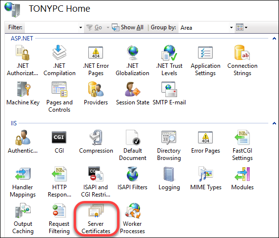 次に右側で、[サーバー証明書] を選択します。