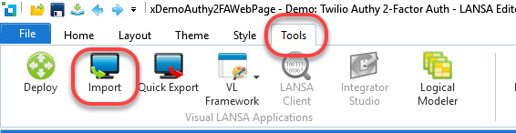 このファイルを解凍し、LANSA IDE から [インポート] ユーティリティを実行します。