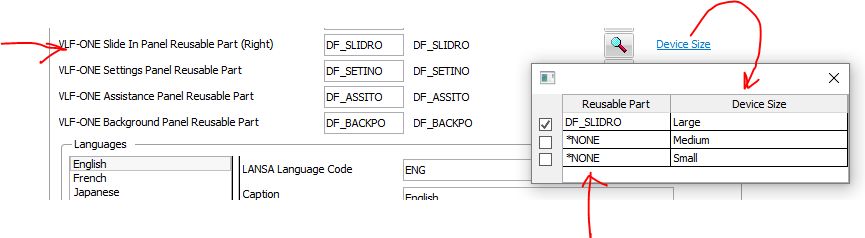 デバイスサイズに基づき、コマンドハンドラーやフィルタを含む VLF-ONE スナップインコンポーネントを変更、または除外することができます。例えば、出荷時に提供されている VLF-ONE デモについて、大型画面のデバイス上でのみパネルの右端にスライドがあるのはこのためです。