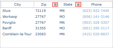 列のフィルターはインスタンスリストの個別の列に対して有効にすることができます。有効化されると、列見出しに次のようなアイコンが表示されます。