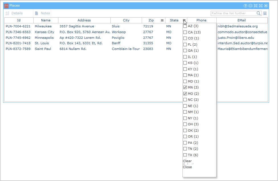 ユーザーがこのアイコンをクリックすると、列の可能な値すべてのリストが表示されます。ユーザーはこのリストの値を選択でき、ユーザーが選択した値はインスタンスリストに反映されます。