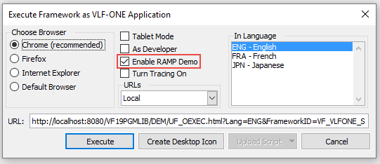 VLF-ONE の起動ポイントにフレームワーク内で RAMP デモンストレーション・マテリアル を有効にできる新しいオプションが追加されました。