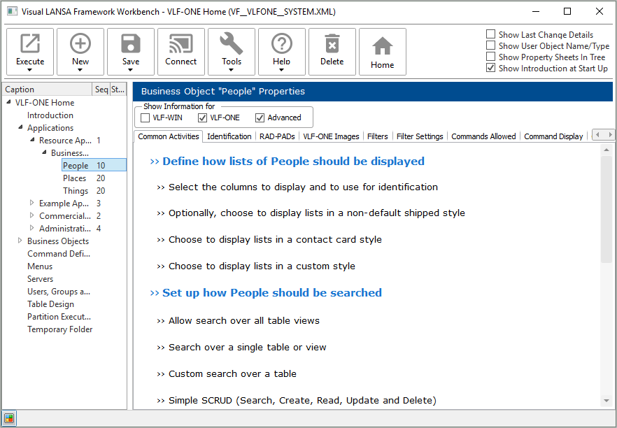 次のようにフレームワーク用の [共通のアクティビティ] タブがあります。