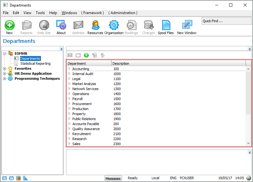 - フレームワーク、次に "部門" オブジェクトのプロパティを表示します。