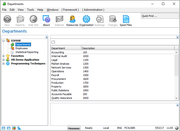 - フレームワークで、ビジネス・オブジェクト "部門" のプロパティを表示します。