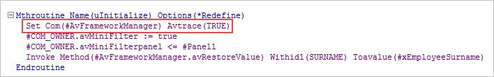 このステップでは、コードを追加して、社員フィルターが使用されるとトレースが開始され、フィルターが使用されなくなるとトレースが終了するようにします。