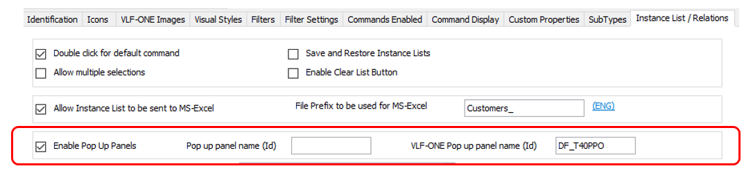 ビジネス・オブジェクトの [インスタンスリストの設定] タブでポップアップをスナップインされます。