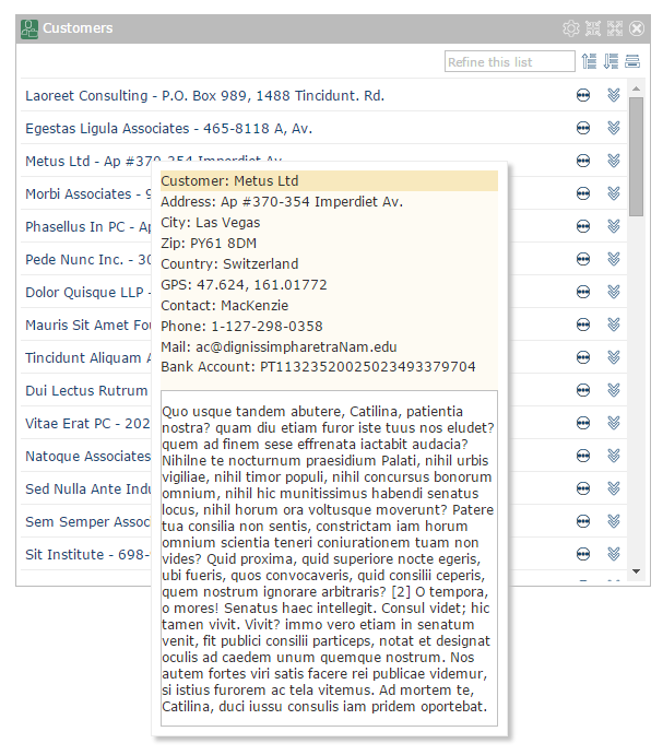 ユーザーがインスタンスリストのエントリー上でマウスをポイントすると表示されるように、ポップアップ・パネルをインスタンスリストのエントリーに関連付けることができます。