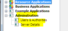 "Users & Authorities" と "Server Details" ビジネス・オブジェクトは、関連するフィルターやコマンドと共に提供されています。