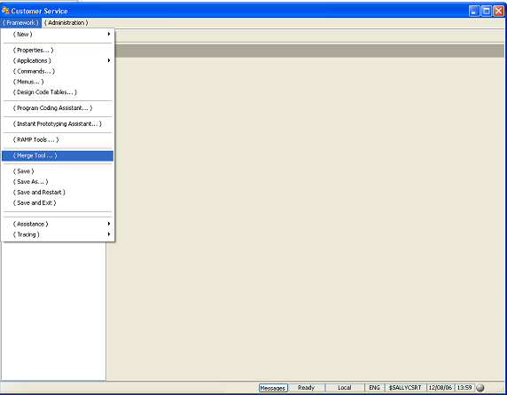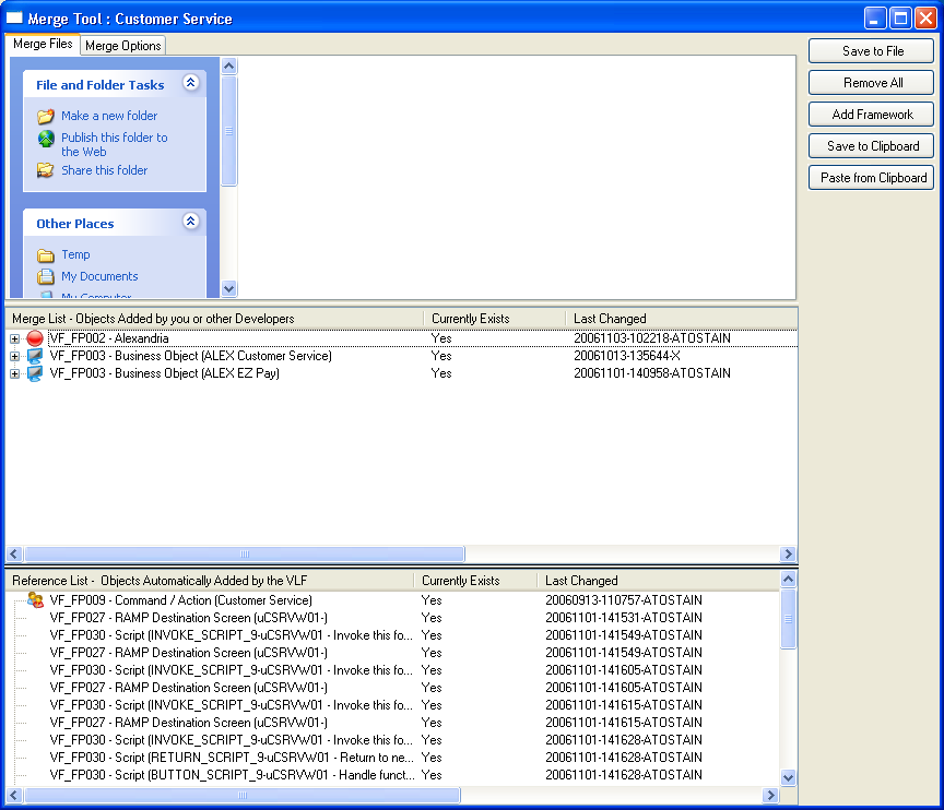マージしようとするビジネス・オブジェクトを、フレームワーク・ウィンドウから、中央パネルにあるマージ・リスト上にドラッグ移動してください。 この例ではAlexandriaを移動しています。