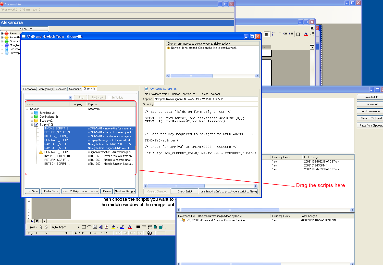必要なスクリプトを選択し、マージ・ツールの中央パネル上にドラッグ移動してください。