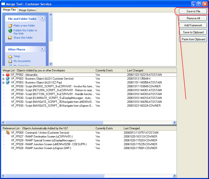 必要なオブジェクトをすべてマージリスト上にドラッグできたら、ファイルに保存ボタンを押します。