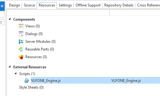 スクリプト・リストにリソース VLFONE_Engine.JS を追加します。変更を保存して再コンパイルします。