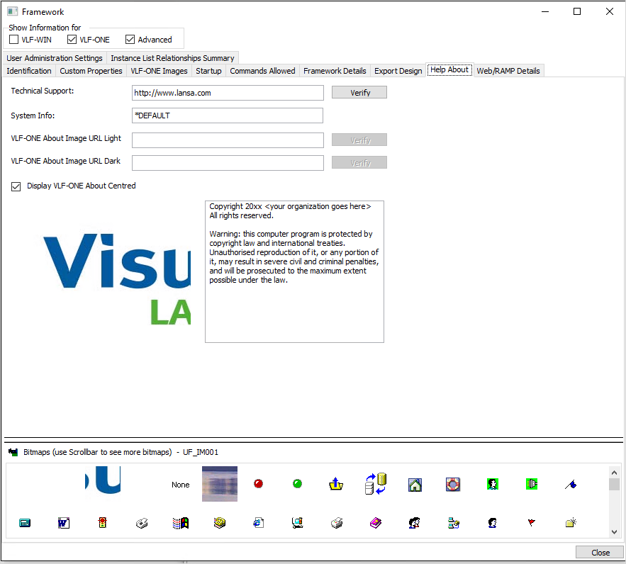 このタブ・シートには、以下のプロパティが含まれます。著作権のテキストVLF-ONE 製品情報を中央に揃えて表示技術サポートシステム情報VLF-ONE 製品情報イメージ URL (濃い)VLF-ONE 製品情報イメージ URL (薄い)