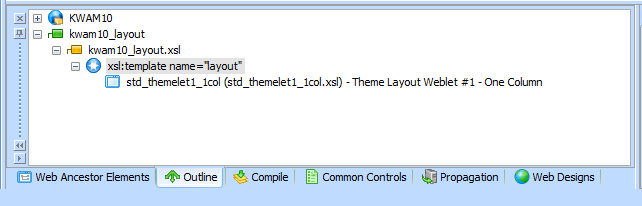 例えばkwamsiteという名前の独自のサイト・レイアウト・ウェブレットを使用している場合、[アウトライン]のツリーは次のようになります。