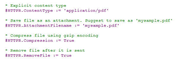 - RemoveFile:TrueまたはFalse。Trueの場合、ユーザー・エージェントに送信された後、ファイルは削除されます。デフォルト値はFalseです。