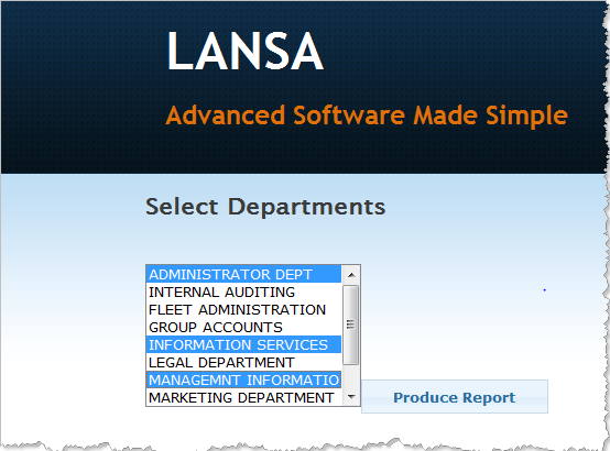 リスト・ボックスで選択された項目を変更して、[Produce Report]ボタンをクリックします。すると、次のようなリスト内で選択された項目のリストが表示されます。