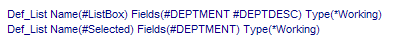 Selectループを使用して、DEPTABファイルから全部門がメインリストである#ListBoxに追加されます。
