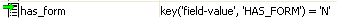 この例は#HAS_FORMフィールドが'N'に等しい場合、デフォルト値のLANSAフォームを削除します。式は必須です。またプロパティにフォーカスがある場合、以下のように表示されます。