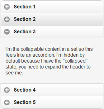折りたたみ可能セット・ウェブレットは、複数の折りたたみ可能ブロック・ウェブレットを囲んで配置され、折りたたみを作成するラッパーです。1つの折りたたみ可能ブロックが展開されると、セット内の他のブロックが折りたたまれます。このウェブレットは折りたたみ可能ブロック・ウェブレットを作成しません。折りたたみ可能ブロック・ウェブレットを作成し、折りたたみ可能セット・ウェブレットのコンテンツ・エリアに入れてください。