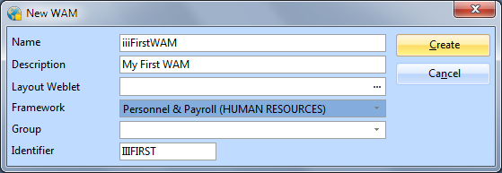 - Frameworks allow related components to be grouped together. The framework assigned to a component may be changed at any time. The Personnel & Payroll Framework has been selected for this new WAM. The new WAM will be given a ComponentFramework property HUMAN RESOURCES-Personnel.Click the Create button to create the new WAM.