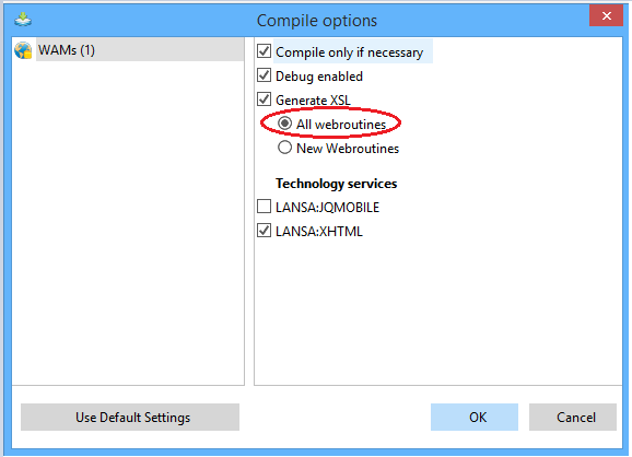 - Click the Compile button in the LANSA Editor toolbar to compile the WAM component.