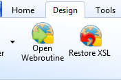 On the Design ribbon, you can use the Restore XSL dialog to restore the previous verified XSL or continue editing. - If necessary, correct any errors in your XSL and save the changes to the HideMain web page.