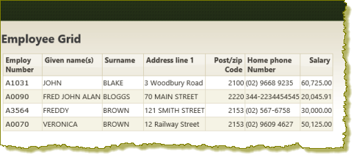 Note: The cascading style sheet has not been applied to the grid. At the moment it defines alternate background colors for a list only.