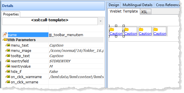 Use the Ellipsis button to find an image for the menu_image value. - Save your changes. You have now completed the definition of your toolbar weblet, which should look like the following: