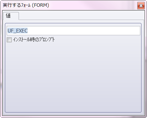 1. テンプレートの導入オプションを変更する | テンプレートを作成するか、開きます。 テンプレートの導入オプションをダブルクリックして、定義を確認します。 例えば、[実行するフォーム]オプションをダブルクリックします。 特定のオプションについては、「テンプレート導入オプション」を参照してください。 |