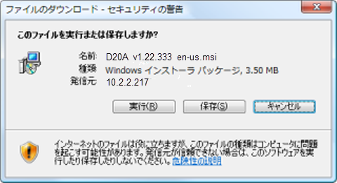 生成処理により1つのインストーラー・ファイルが生成されるため、Windowsインストーラー・ファイルは、URLから簡単に起動できます。