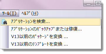 特定のオブジェクトもしくはオブジェクト・グループを含むパッケージを確認するには、[ツール] メニューから[アプリケーションを検索...]を使用します。