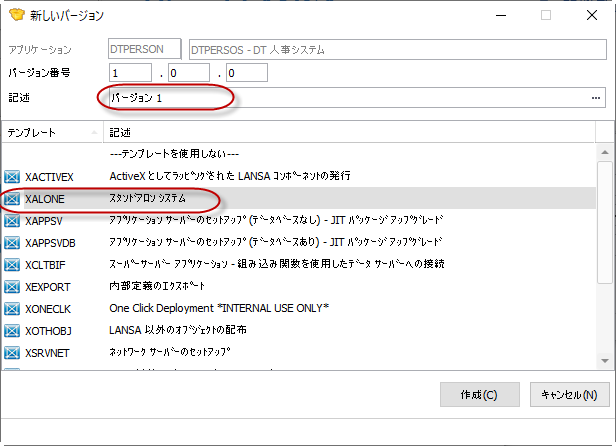 3. スタンドアロン・アプリケーションの配布を完成させようとしている場合は、テンプレート XALONE を選択します。