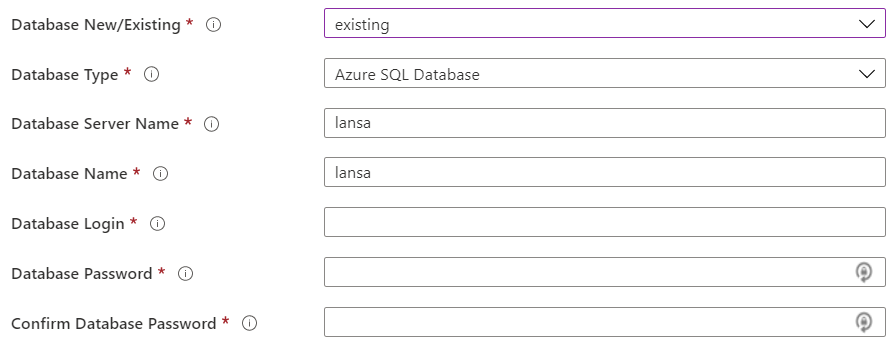 デプロイの一部として既存データベースを使用するテンプレートが必要な場合、最初のパラメータとして Existing を選択します。