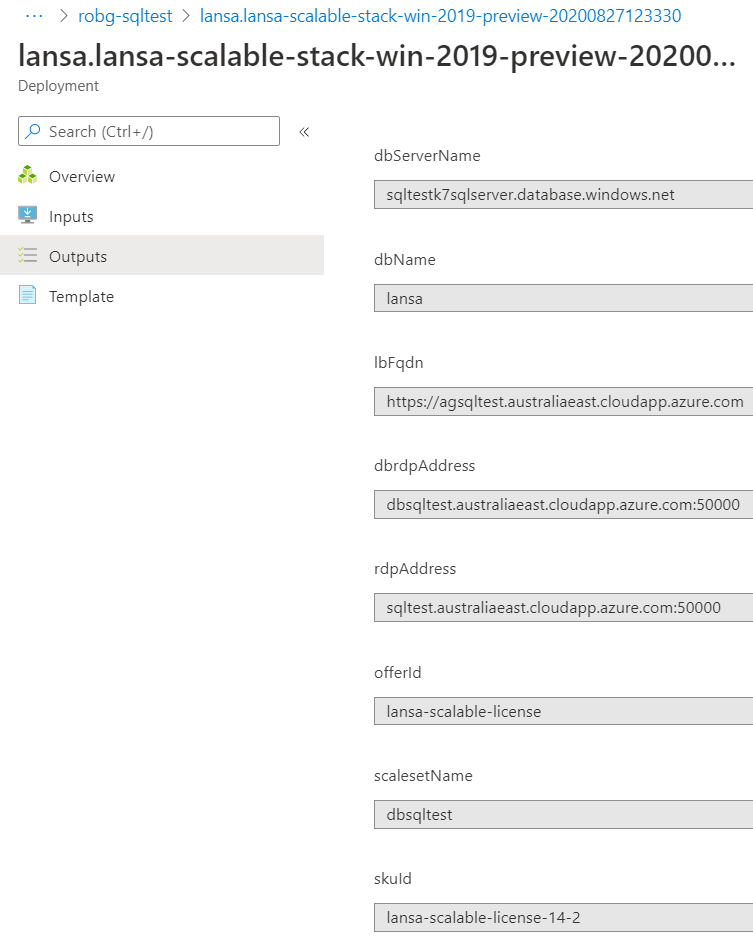 その他、注意する値としては、dbrdpAddress と rdpAddress で、これを使って仮想マシンに RDP します。ポート 3389 は使用されないことに注意してください。